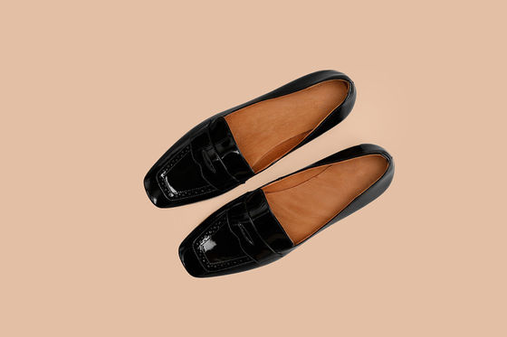 Black soft patent leather women Loafers shoes with 2cm low heel